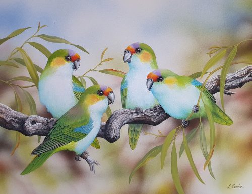 “Purple-crowned Lorikeets” 280 X 220 mm unframed $450