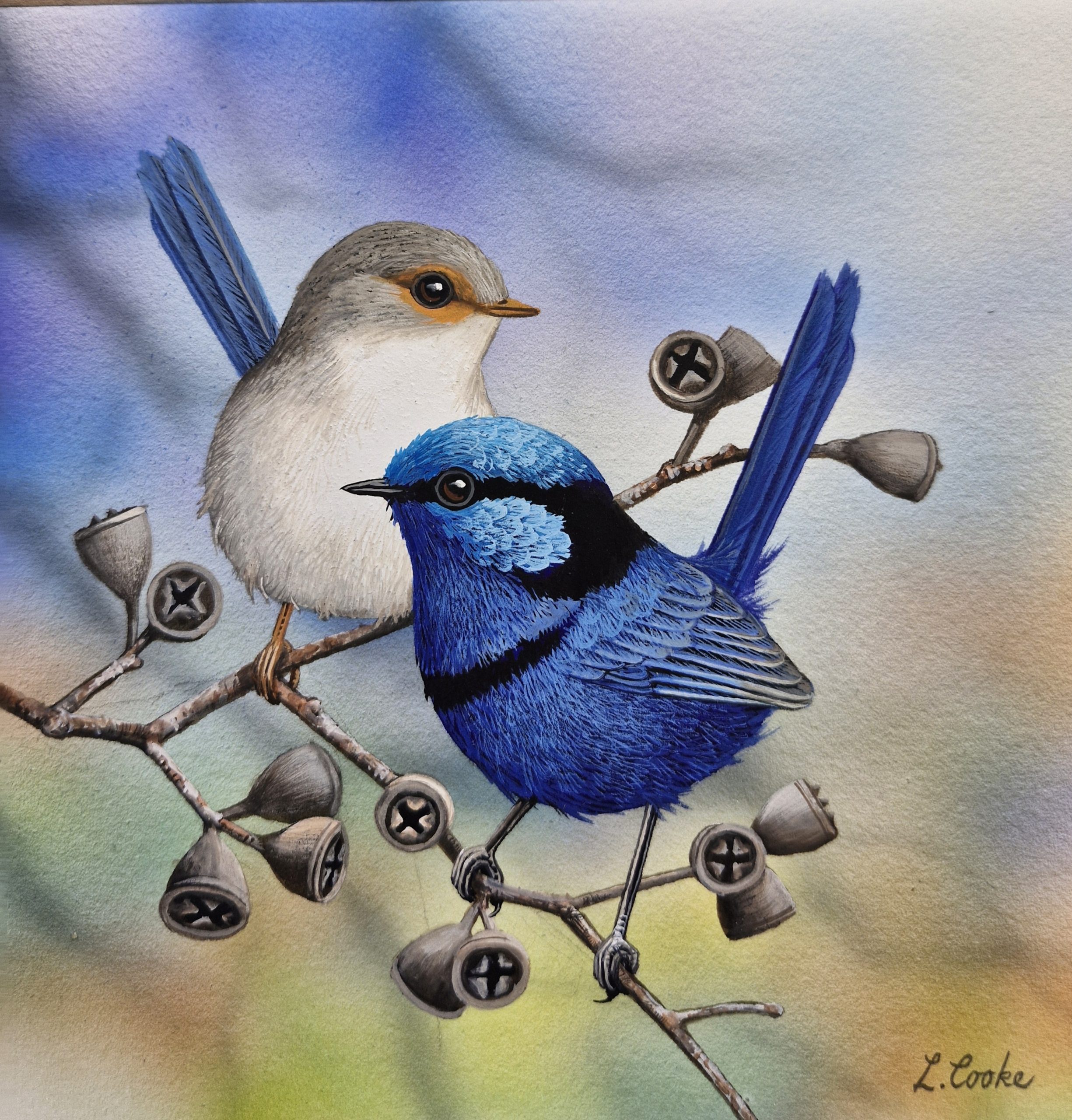“Splendid Wrens” 150 X 150 mm. Matted to fit 250 X 250 frame $175